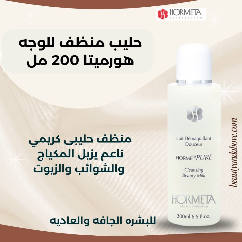 حليب منظف للبشره 200 مل من هورميتا هو منظف حليبى كريمي ناعم يزيل المكياج والشوائب والزيوت من البشره بفاعلية بدون جفاف بشرتك والمحافظه على نعومتها ومرونتها حيث انه غنى بزيوت القمح والذرة التي تحافظ على بشرتك ناعمة ورطب