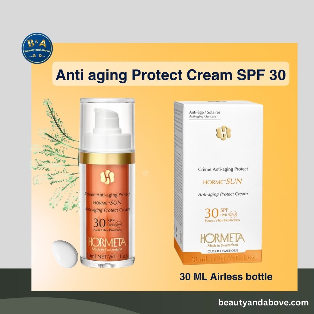 Anti-aging Protect Sunscreen Cream SPF 30 from HORMETA is a complete sunscreen that not only provides broad-spectrum sun protection against both UVA and UVB rays but also reduces signs of aging and wrinkles, leaving your skin brighter and firmer for a youthful look.