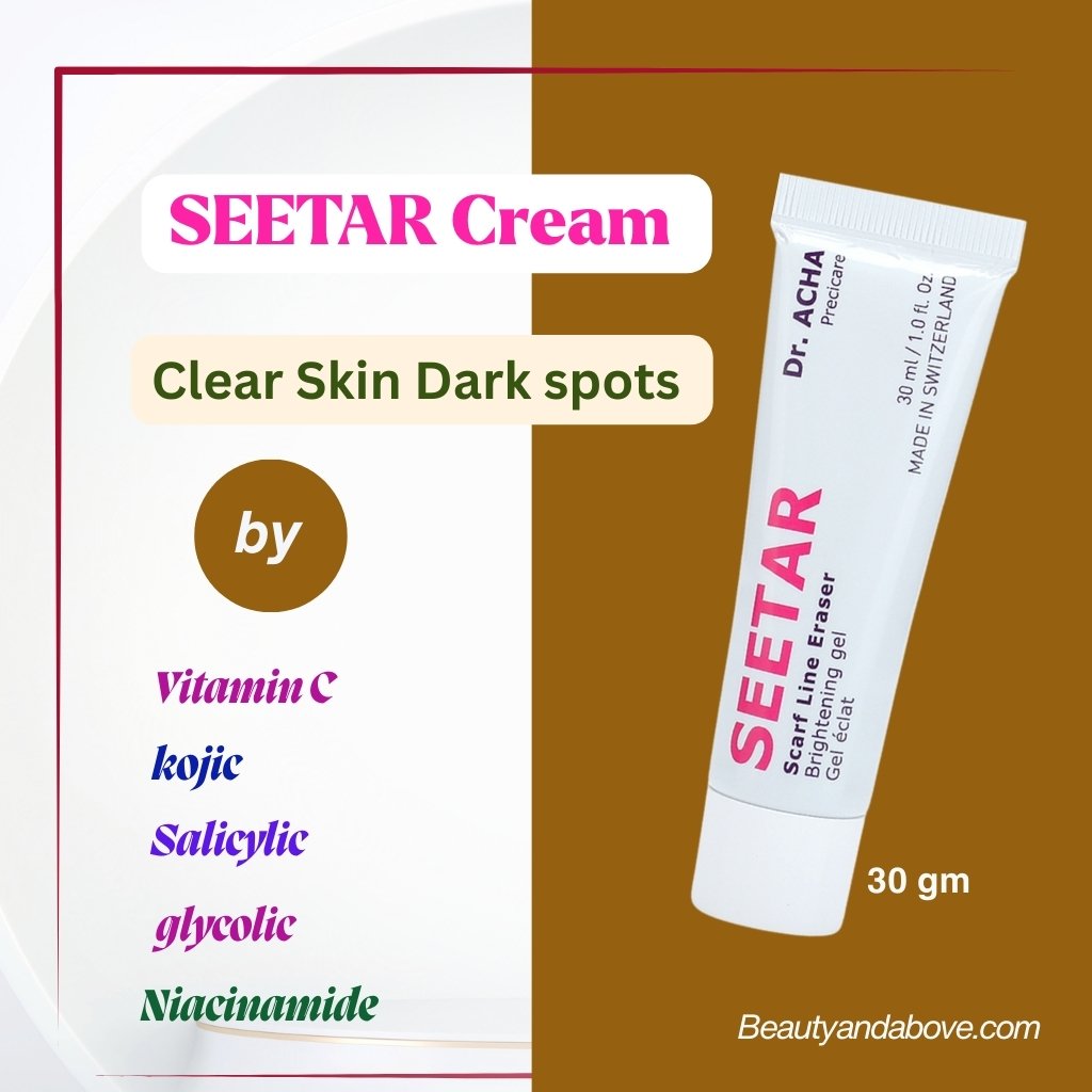 SEETAR advanced gel cream is expertly formulated with a powerful Natural blend of Vitamin C, Niacinamide, Glycolic, Kojic, and Salicylic acids, works at the source to regulate melanin production and visibly